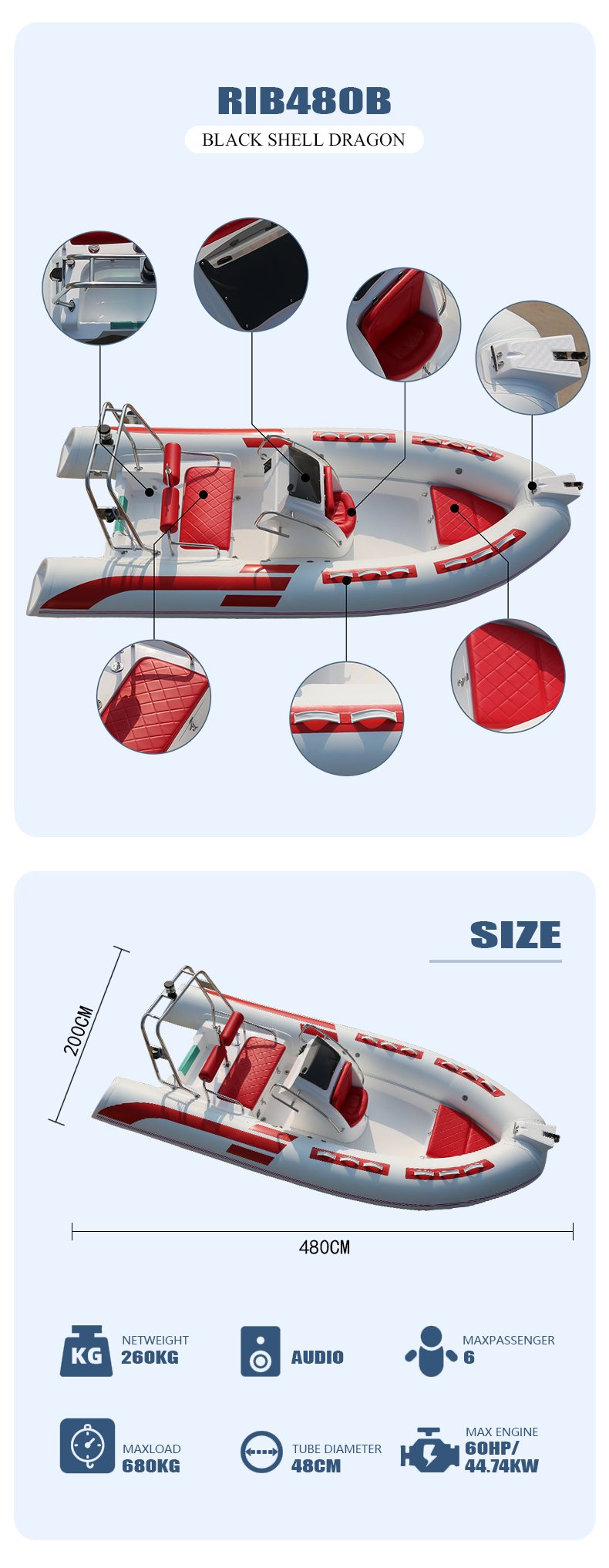 480B White Red Decoration hypalon Inflatable rib Boat