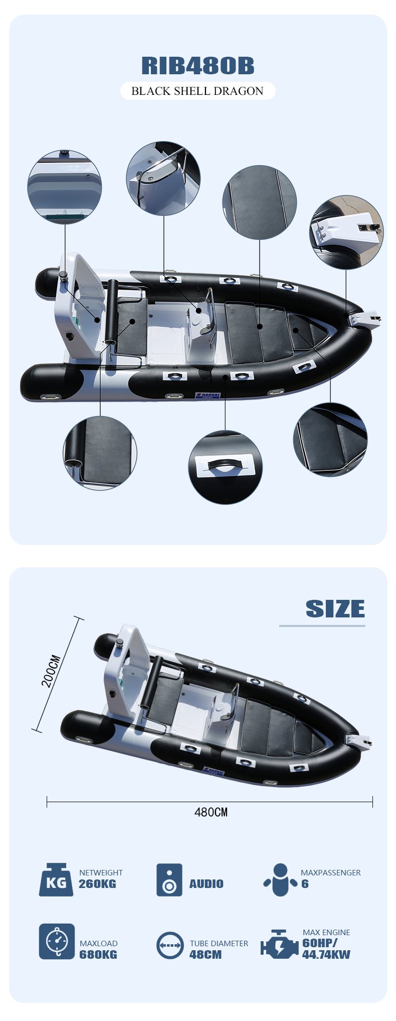 480B Black PVC Racing Rafting Hypalon Sport Boat