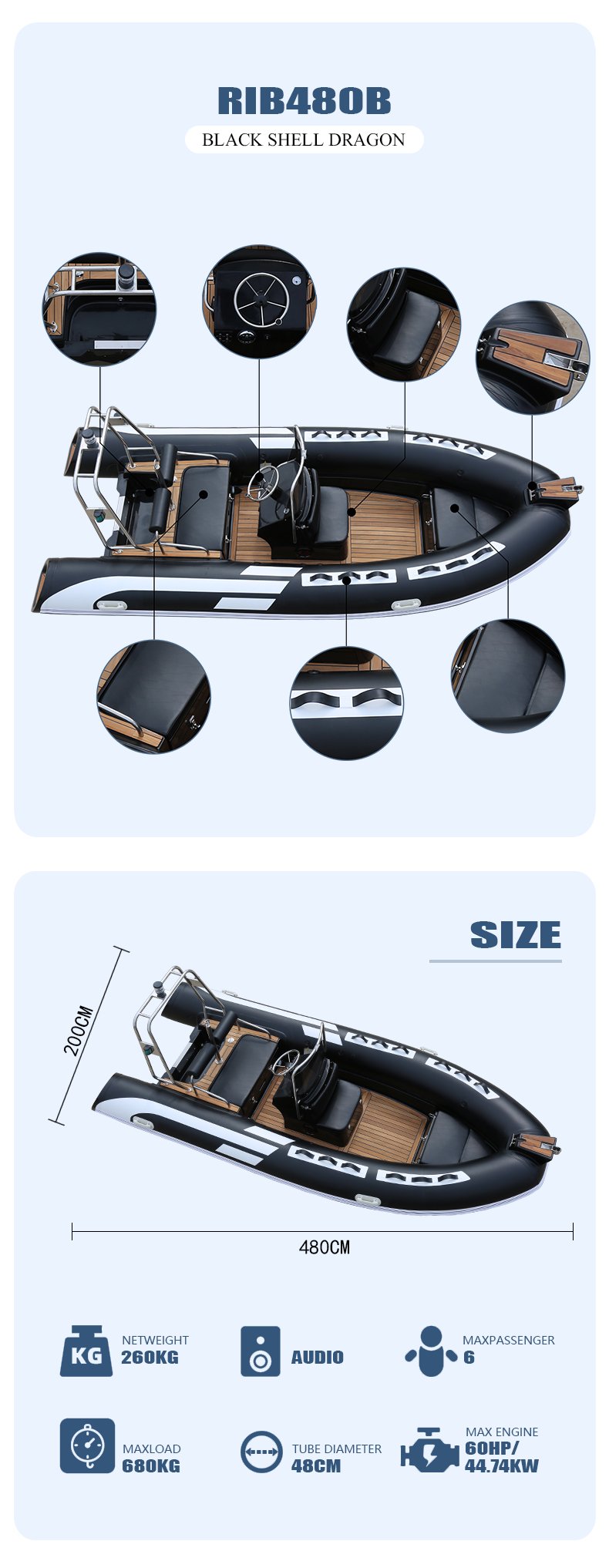 480B black shell black PVC Luxury Rigid Pontoon Rib boat