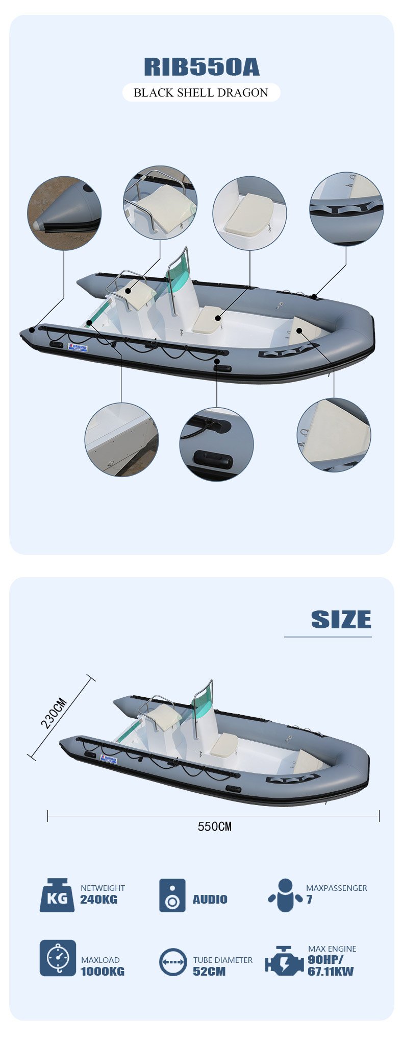 550A Luxury Inflatable Rib Boat