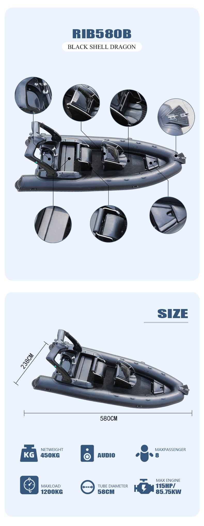 580B black Racing Rafting Hypalon Sport Rib Boat