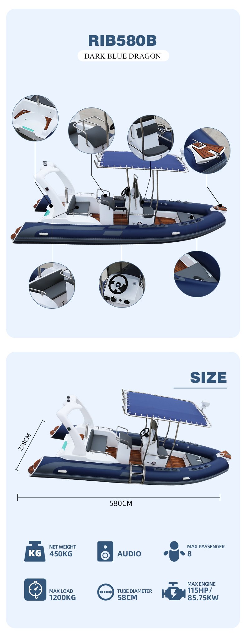 580B Deep Blue Racing Rafting Hypalon Sport Rib Boat