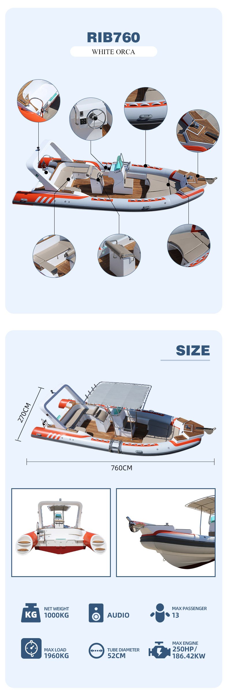 760 White Haohai Inflatable Rib Boat