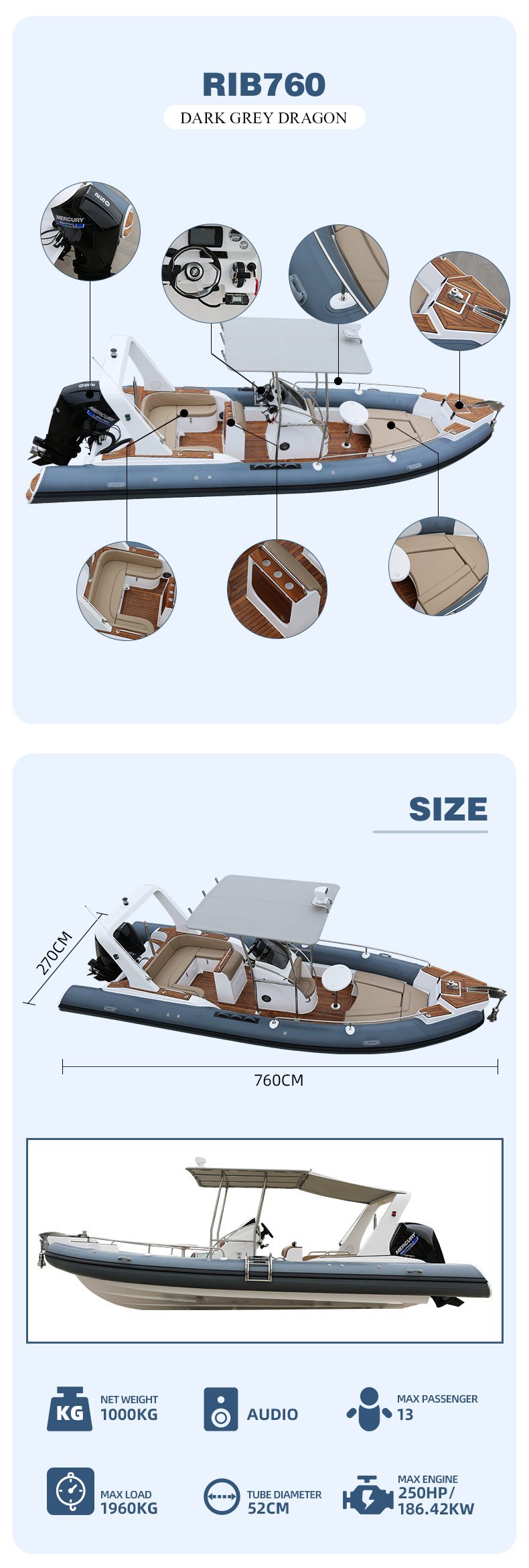 760 Rowing Yacht Rib Fishing Fiberglass Boat